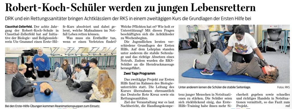 Robert-Koch-Schüler werden zu jungen Lebensrettern – 17.04.2026 aus: Goslarsche Zeitung vom 17.04.2026